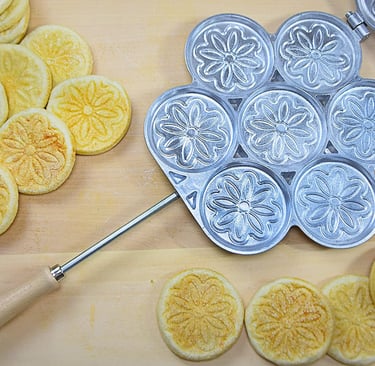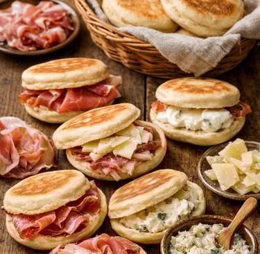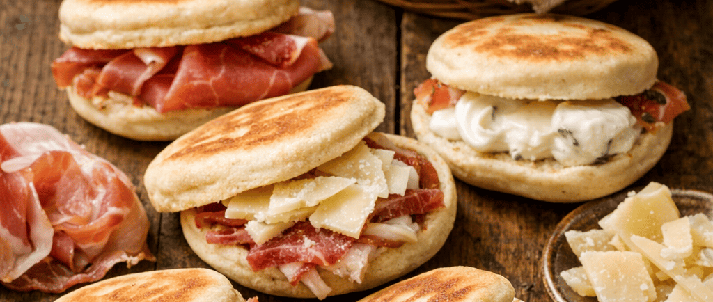 Originally cooked between heated stone or terracotta discs, tigelle are still made today using a tigelle press, which gives them their characteristic texture. They are never fried, never baked in an oven, and always served hot with traditional condiments.
