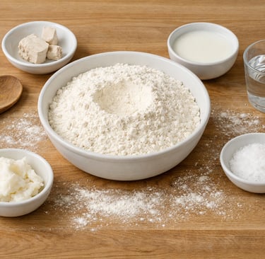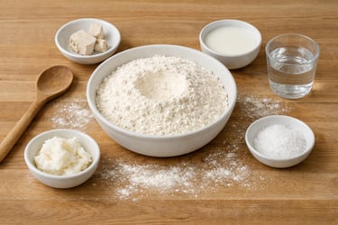 In a large bowl, combine flour and salt, then add the yeast mixture, milk, and softened lard.